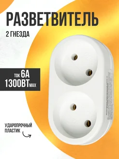 Тройник 2 гнезда разветвитель сетевой без заземления белый
