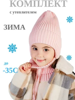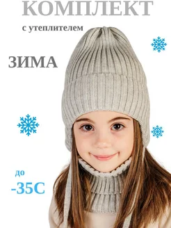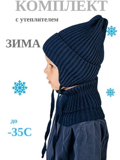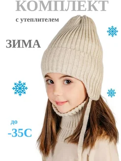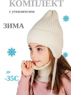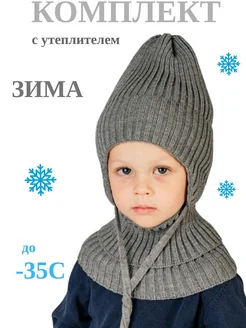 Шапка детская осенняя зимняя со снудом вязаная на завязках
