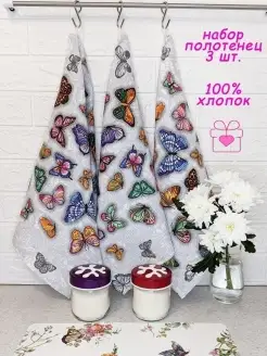 Полотенца кухонные вафельные Бабочки Набор 3шт