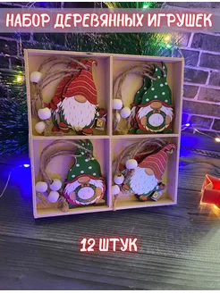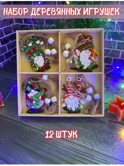 Елочные украшения деревянные игрушки набор