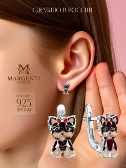 Серьги детские животные собаки из серебра 925 пробы