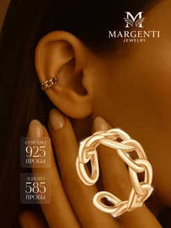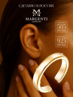 Кафф без прокола серебро 925 тонкий моносерьга с позолотой