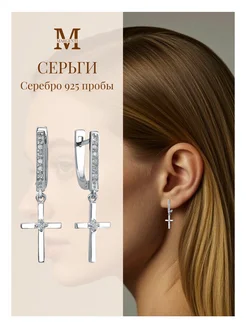 Серьги серебро 925 кресты длинные