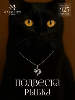 Подвеска рыбка с голубым фианитом серебряная