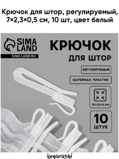 Крючок для штор. регулируемый. 7 х 2.3 х 0.5 см. 10 шт