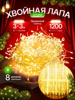 Гирлянда штора хвойная лапа желтая мишура 3х3 с пультом