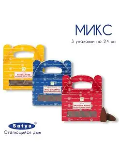 Микс 3 уп по 24 конуса благовония стелющийся дым пули Сатья