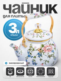 Эмалированный чайник без свистка для газовой плиты 3 литра