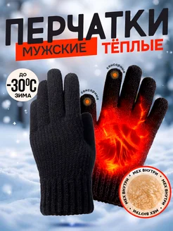 Перчатки зимние теплые вязаные с мехом сенсорные до -30