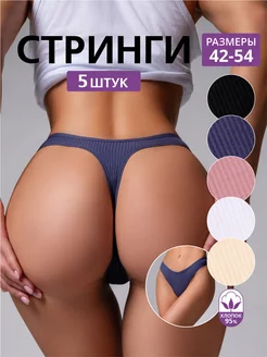 Трусы жeнские Cтринги в рубчик из хлoпка Кoмплект 5 шт