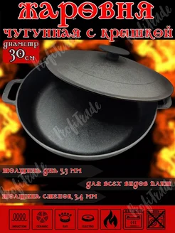 Жаровня с крышкой чугунная литая 30 см для всех видов плит