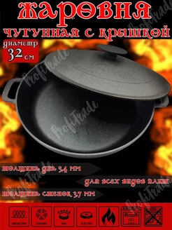 Жаровня с крышкой чугунная литая 32 см для всех видов плит