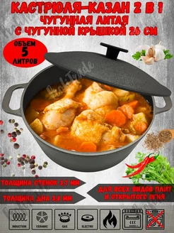 Кастрюля Казан чугунный 5 л с крышкой чугунной 26 см
