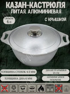 Казан 4 л алюминиевый литой Кастрюля с крышкой