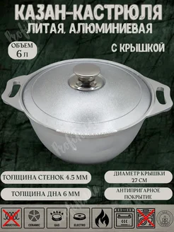 Казан 6 л алюминиевый литой Кастрюля с крышкой