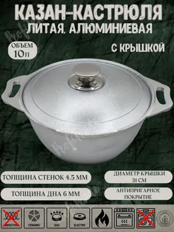 Казан 10 л алюминиевый литой Кастрюля с крышкой