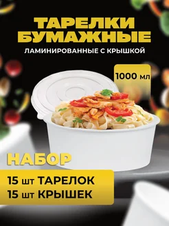 Тарелки одноразовые бумажные глубокие с крышками 1000 мл