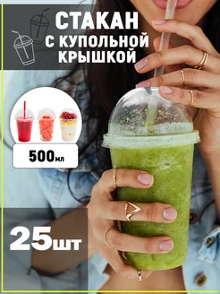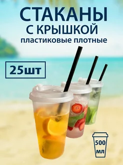 Стаканы пластиковые для коктейлей с крышкой 500 мл