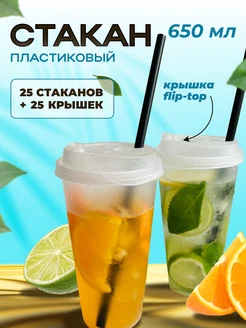 Стаканы пластиковые для коктейлей с крышкой 650 мл