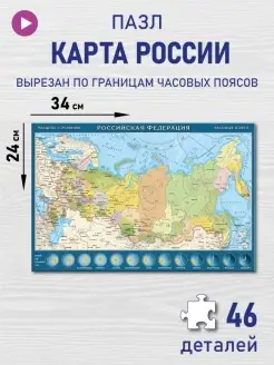 Пазл карта России 34х24, вырезан по границам часовых поясов