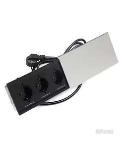 Розетка выдвижная встраиваемая в пол или столешницу, Черная