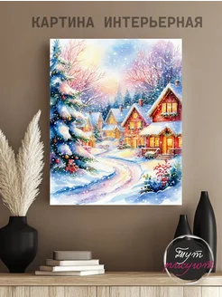 Картина интерьерная новогодняя на стену Пейзаж 40х50 см