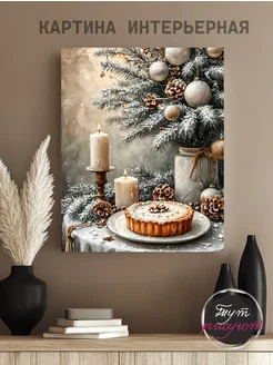Картина интерьерная новогодняя на стену Натюрморт 40х50 см