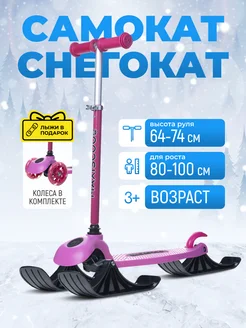 Детский трехколесный самокат-снегокат с лыжами ONE+
