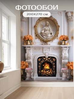 Флизелиновые фотообои 3d в спальню и зал 200х270 см камин