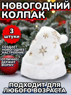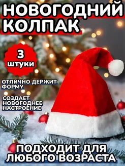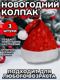 Новогодняя шапка колпак Деда Мороза 3 штуки