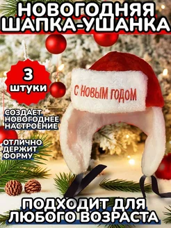 Новогодняя шапка ушанка С Новым Годом 3 штуки