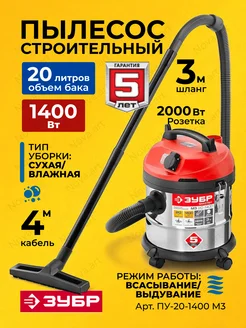 Строительный пылесос с всасыванием воды 20 л 1400 вт