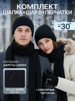 Шапка шарф перчатки комплект зимний с утеплителем
