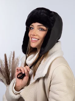 Шапка ушанка зимняя непродуваемая на флисе из экомеха