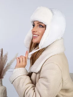 Шапка ушанка зимняя непродуваемая из экомеха на флисе