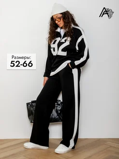 Костюм теплый вязаный с брюками больших размеров