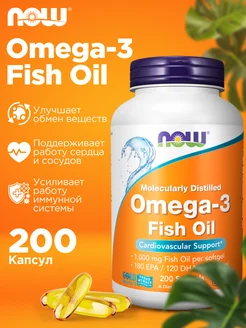 Нау Омега 3 1000 мг, Omega 3, Рыбий жир, 200 капсул