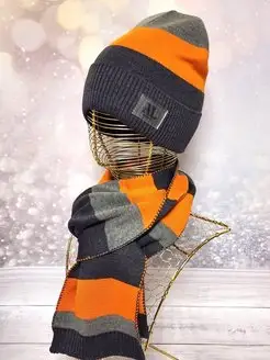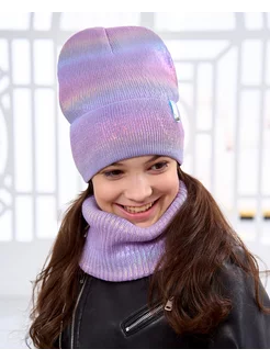 Шапка зимняя для девочки с ушками снуд и митенки комплект
