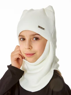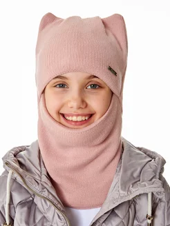 Шапка-шлем детский балаклава зима для девочки с ушками