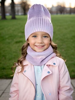 Шапка осенняя модная для девочек с ушками, снуд митенки