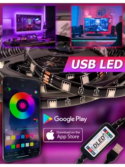 Светодиодная лента RGB многоцветная USB Bluetooth 5 метров