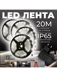 Светодиодная лента с блоком 220V 20м (4 катушки по 5м) белый