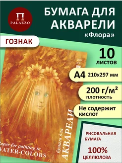 Бумага для акварели Флора гознак А4 200г м2 10 листов