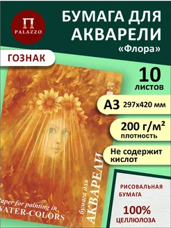Бумага для акварели Флора гознак А3 200г м2 10 листов