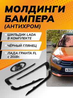 Молдинги бампера чёрный глянец Гранта FL 2018+ и Шильдик