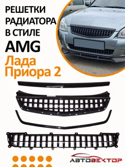 Решетки радиатора Лада Приора 2 в стиле AMG Черный Глянец