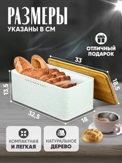 Хлебница металлическая с бамбуковой крышкой на стол