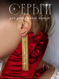 Серьги вечерние с длинными цепочками золотистые бижутерия