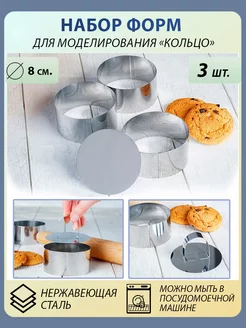 Форма для салата кольцо кулинарное с прессом 8х8х4см 3шт