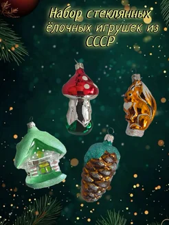 Елочные игрушки набор домик, белочка, грибок и шишка